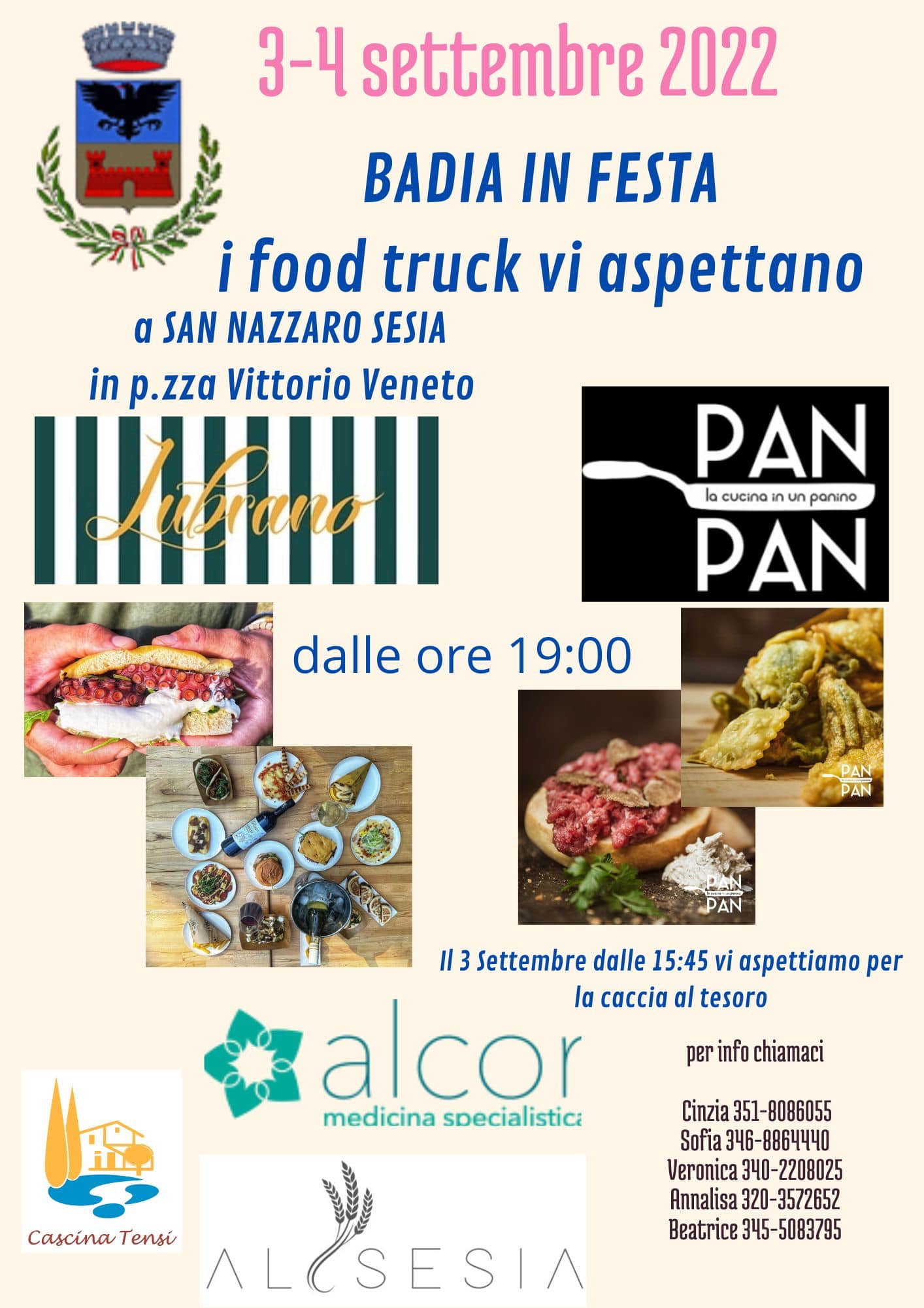 3 e 4 settembre "Badia in Festa" nella piazza principale del paese food truck con tante specialità culinarie differenti e animazione. Dalle ore 19
