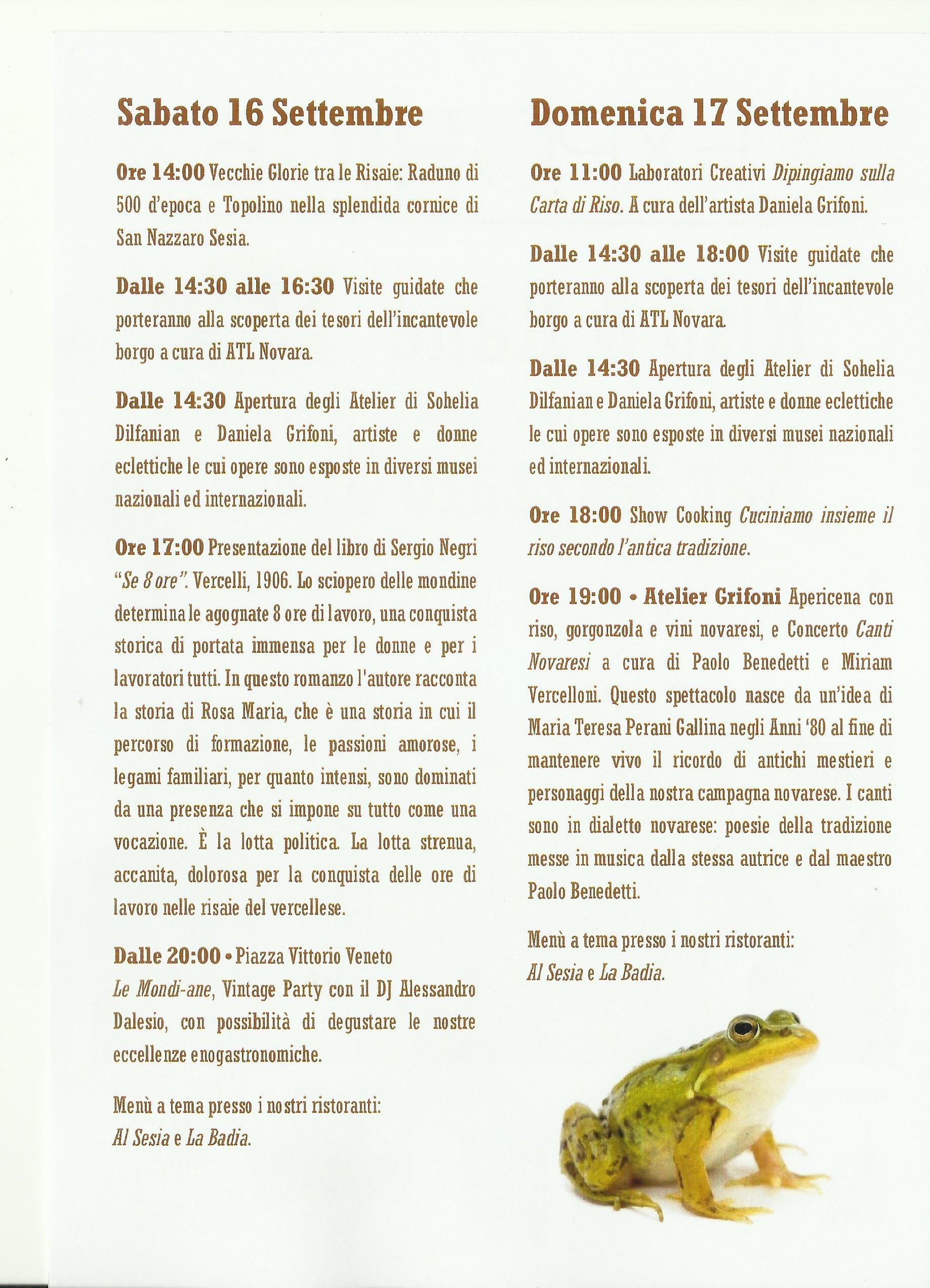 Torna l'appuntamento col riso a San Nazzaro Sesia, qui di seguito il programma: