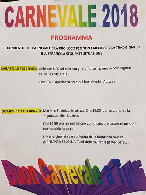 Sabato 10 febbraio dalle 8,30 ad oltranza in giro per tutto il paese accompagnati dai Mi e i Me Amis.