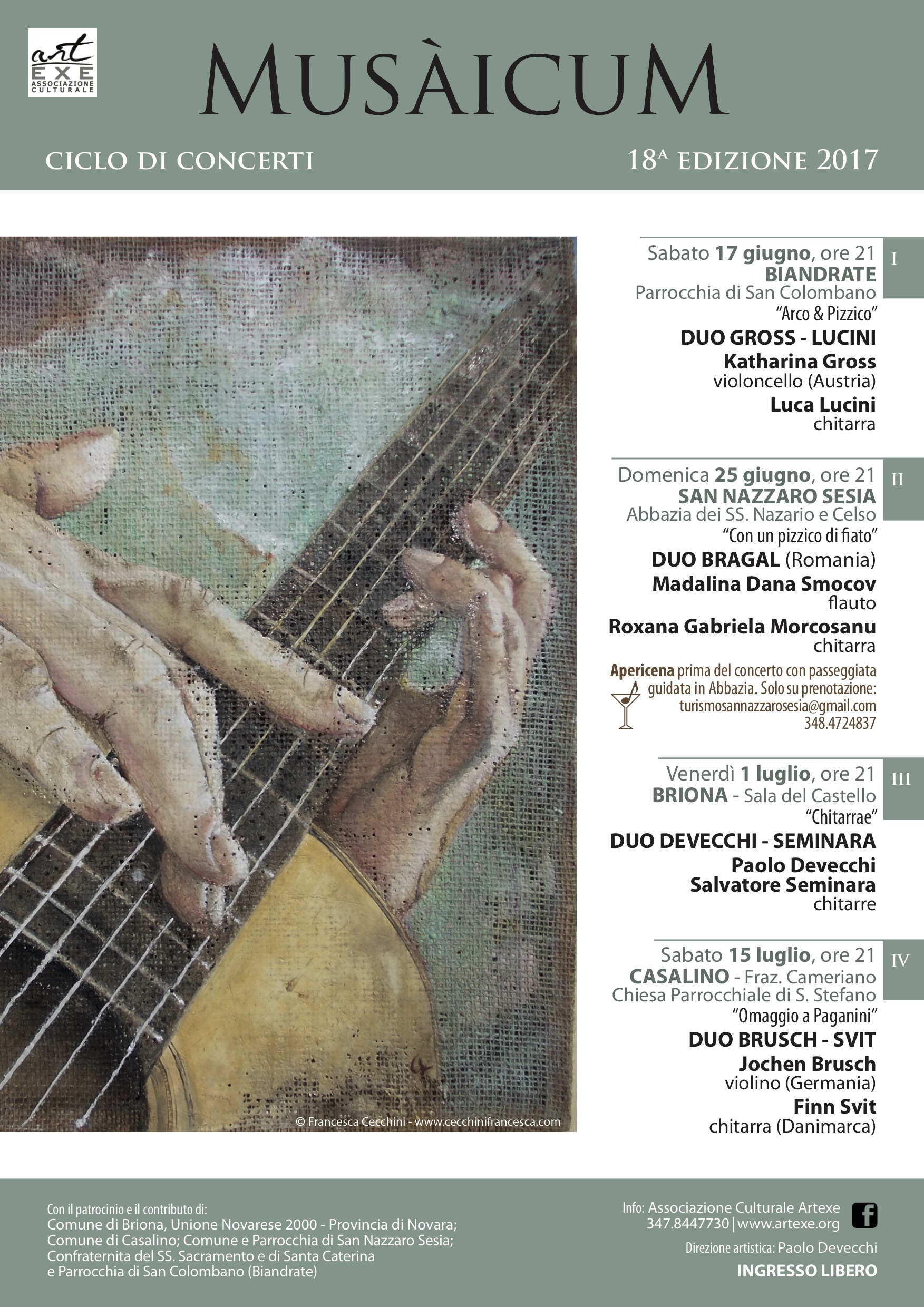 San Nazzaro Sesia domenica 25 giugno alle ore 21, presso il chiostro dell'abbazia dei Santi Nazzaro e Celso, ci sarà il concerto del Duo Bragal (Romania), "Con un pizzico di fiato" con Madalina Dana Smocov (flauto) e Roxana Gabriela Morcosanu (chitarra). L'ingresso al concerto è libero.