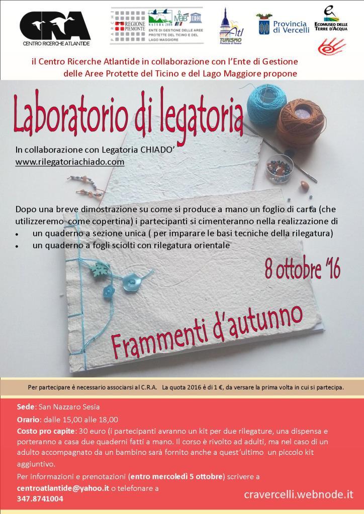 Sabato 8 ottobre, a San Nazzaro Sesia, si svolgerà con un interessante laboratorio di legatoria realizzato in collaborazione con la storica Legatoria Chiadò di Torino.