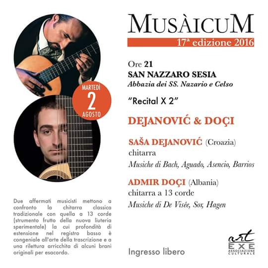 Martedì 2 agosto - ore 21,00 - San Nazzaro Sesia - presso il chiostro dell'Abbazia dei Santi Nazario e Celso - "Recital x 2" - Doçi & Dejanovic