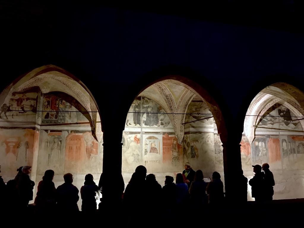 Ore 20,30 passeggiata notturna per vedere gli affreschi del chiostro e scoprire insieme "l'arredamento nel medioevo", a cura della dott.ssa Flavia Silva.