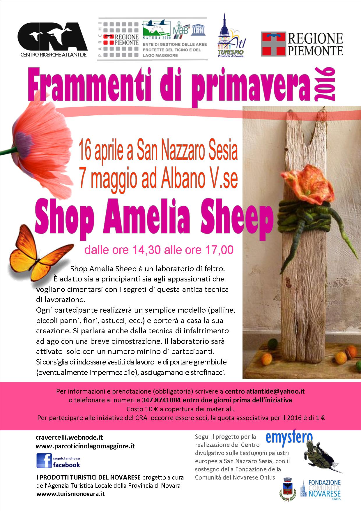Nell'ambito dell'iniziativa "Frammenti di Primavera", l'Associazione Atlantide presenta un laboratorio di feltro adatto sia ai principianti che agli appassionati. Ogni partecipante realizzerà un modello che poi si porterà a casa. Si consiglia di indossare abiti da lavoro. Costo Euro 10 a copertura dei materiali. Per partecipare alle iniziative del CRA occorre essere soci, quota associativa per il 2016 e di Euro 1.
