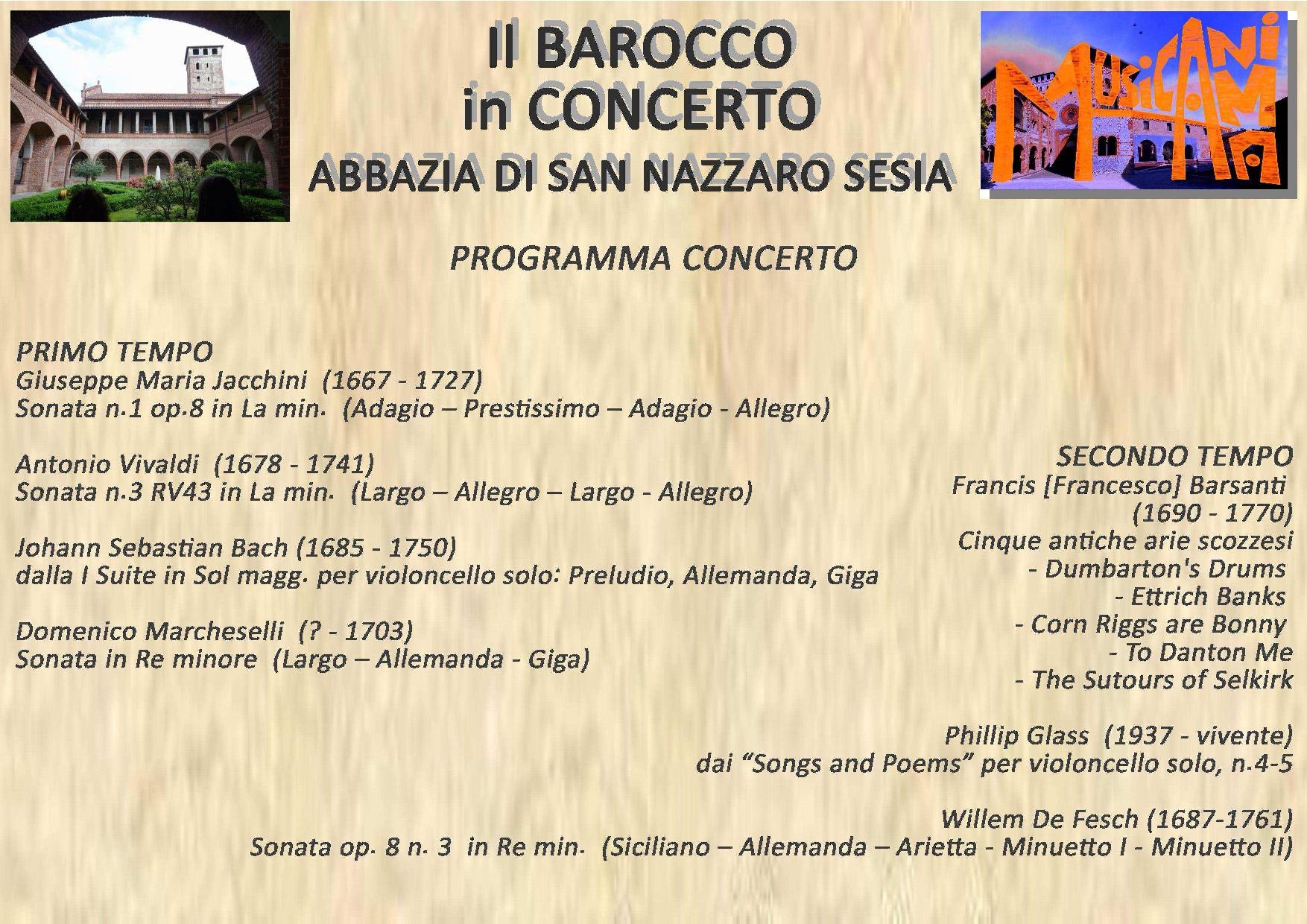 Sabato 22 luglio - ore 21,00 - Chiostro dell'Abbazia di San Nazzaro Sesia - Continua l'iniziativa di "Musicanima" con un nuovo appuntamento: sabato 22 luglio - duo di Violoncelli Paola Brancato e Marco Pasquino con repertorio di musica barocca. Vi aspettiamo numerosi. Ingresso libero.