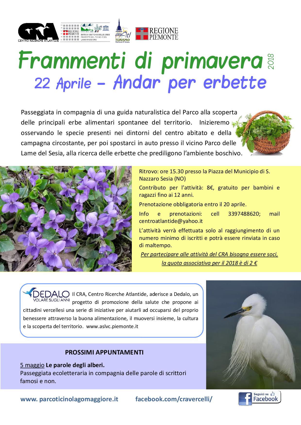 | per prenotazioni per "Andar per erbette" centroatlantide@yahoo.it entro il 20 aprile | |