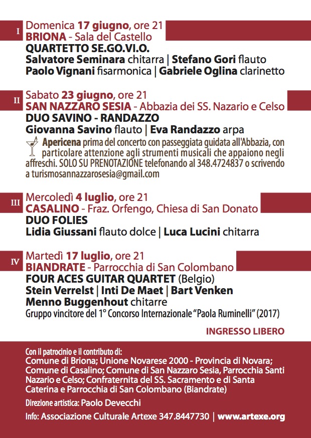 Il Ciclo di Concerti Musàicum è quest'anno giunto alla 19a edizione. Sabato 23 giugno alle ore 21,00 presso il chiostro dell'Abbazia a San Nazzaro Sesia, si esibirà in concerto il Duo Savino-Randazzo (Giovanna Savino al flauto e Eva Randazzo all'Arpa). Ingresso libero.