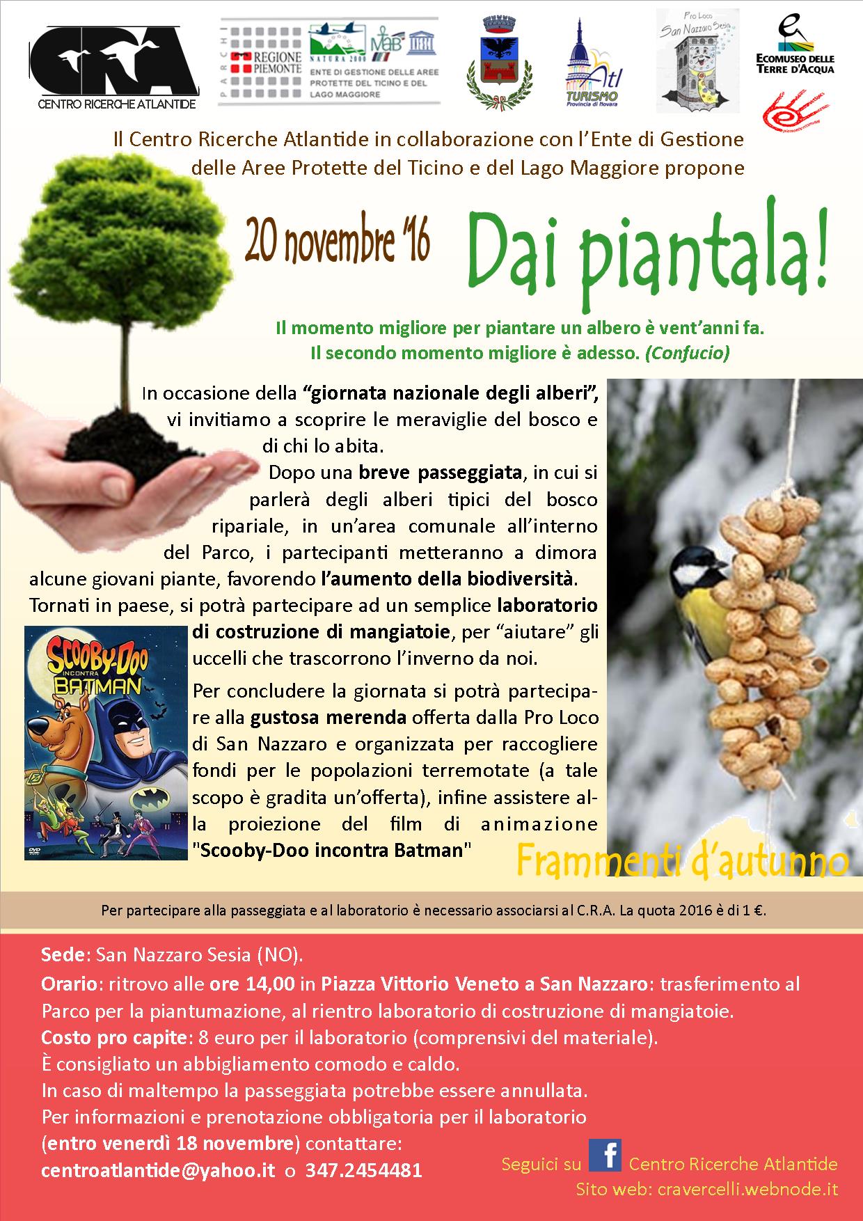Ore 14,00 - Si incomincia con la piantumazione di alberi presso il Parco Lame del Sesia - Incontro in Piazza Vittorio Veneto con gli amici del Centro Ricerche Atlantide (CRA) e spostamento presso il Parco Lame.